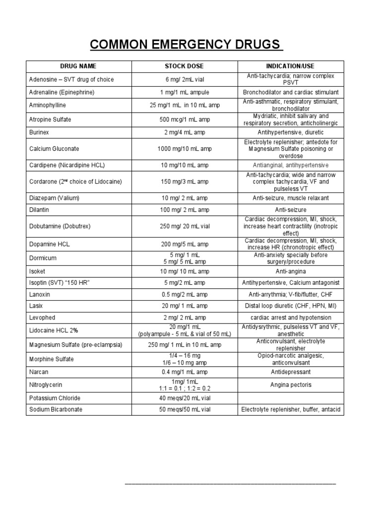 Emergency Notes reviewer Commonly Asked Emergency Drugs Emergency