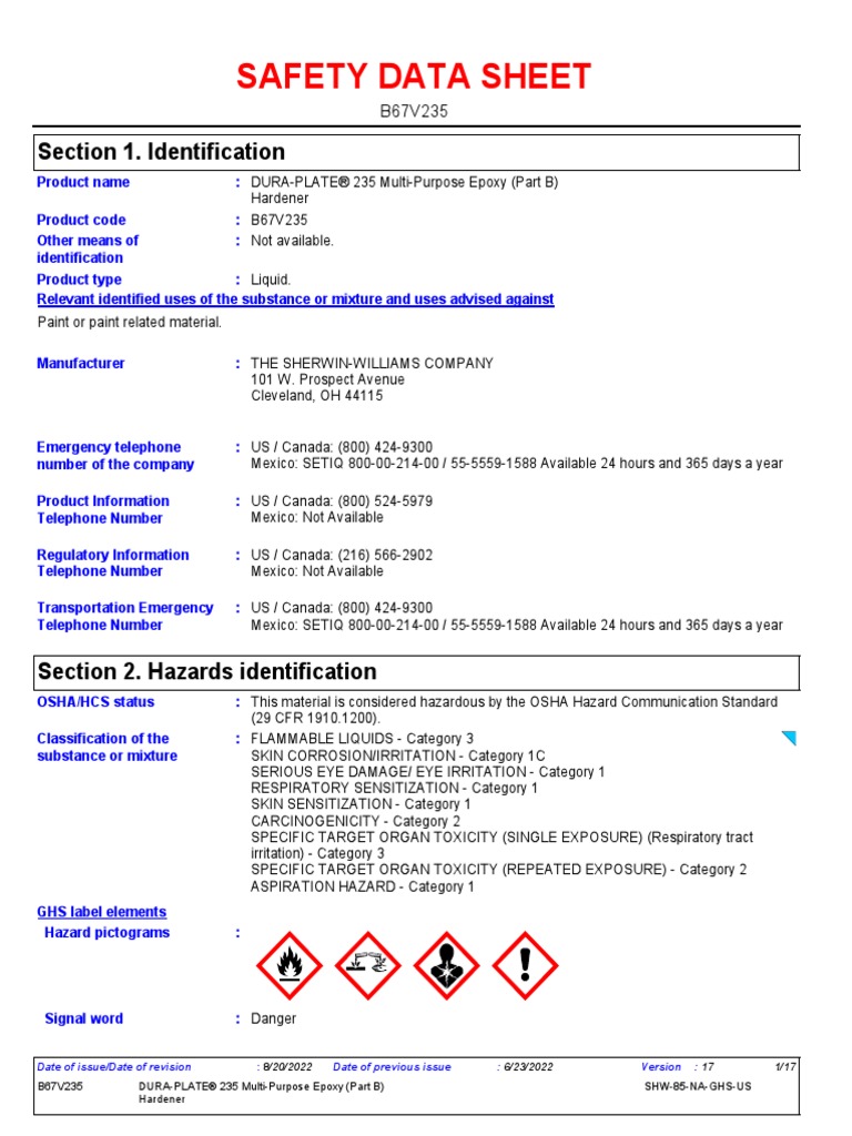 Duraplate 235 Part B PDF Safety Chemistry