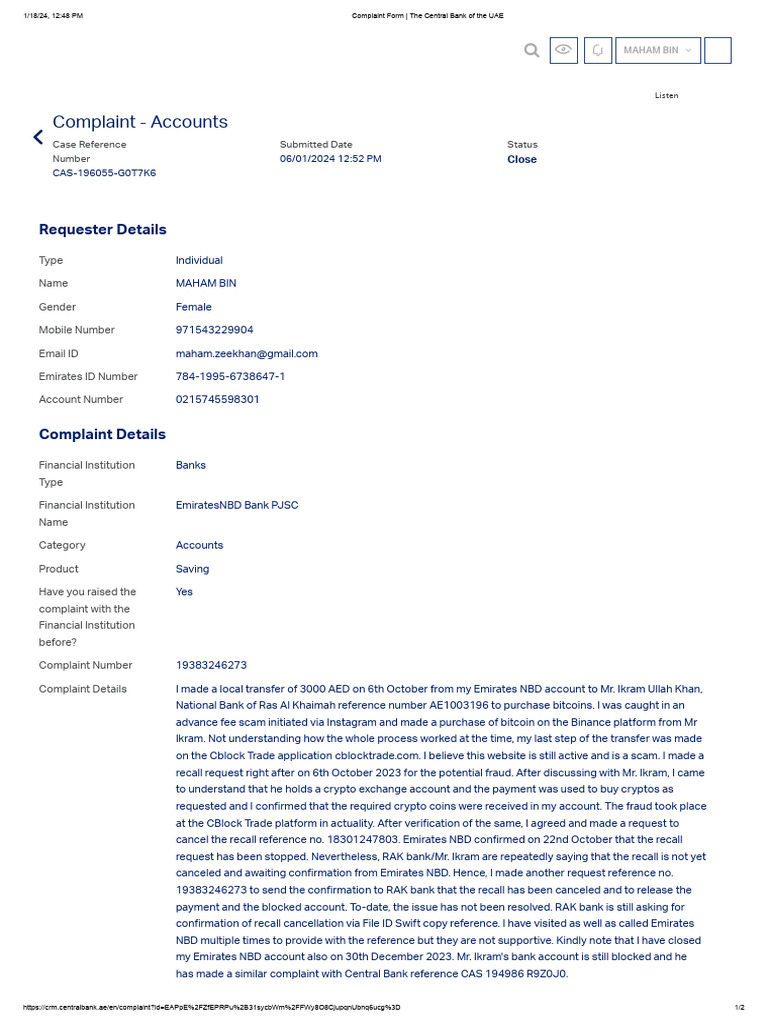 Complaint Form The Central Bank of The UAE PDF Cryptocurrency