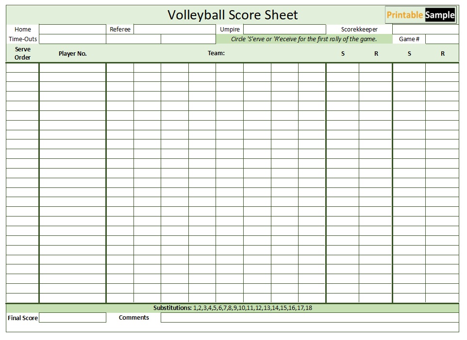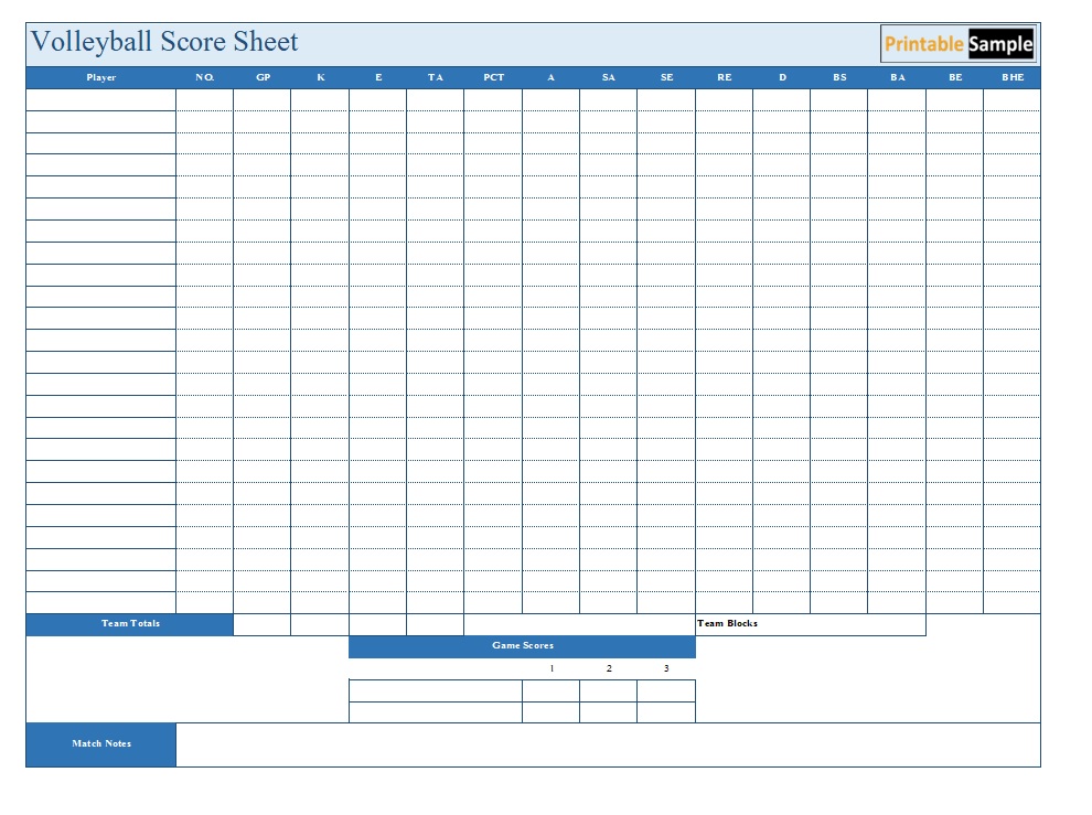 Volleyball Score Sheet 7 Free Templates in PDF, Word, Excel Download