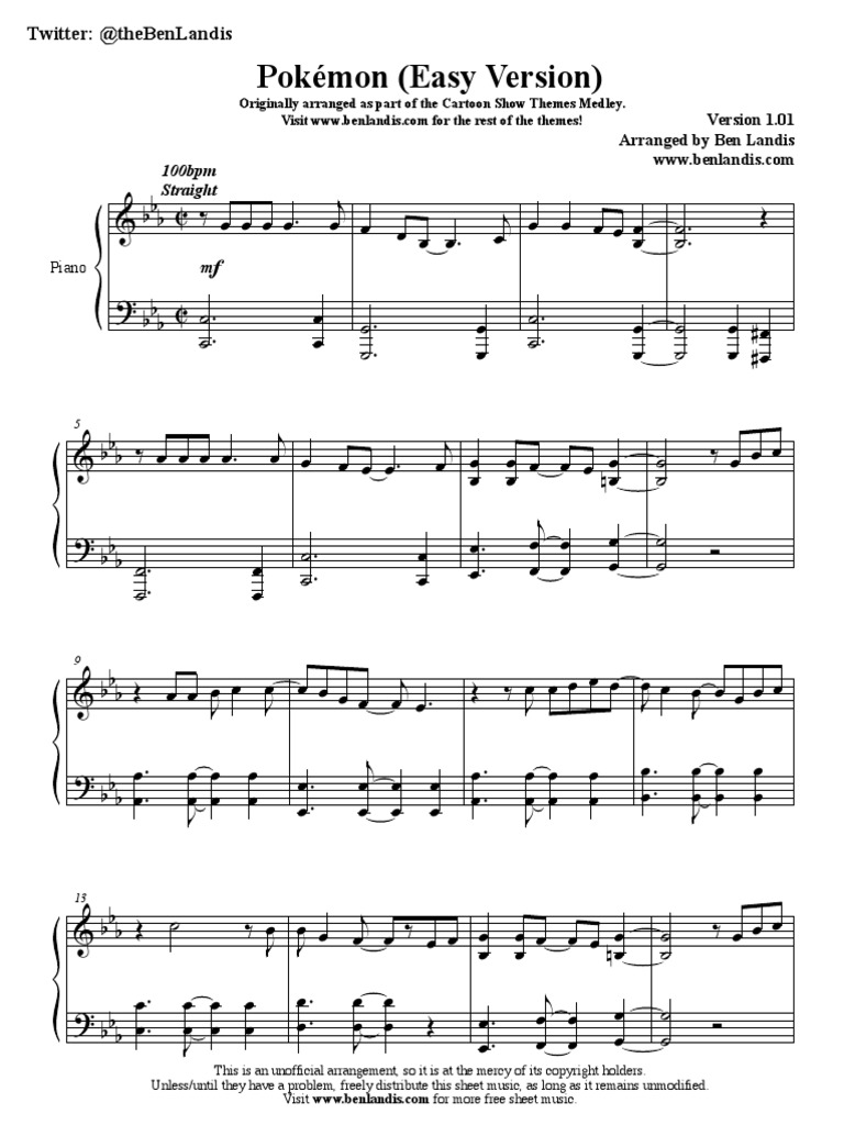 pokemon piano sheet music Pokemon theme piano sheet music Sheet Music